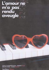 Aveugle, pianiste, Romain Villet cherche celle à qui dire : « T’as de bons yeux tu sais… » . Un spectacle « seul-en-scène » comique, et non moins musical